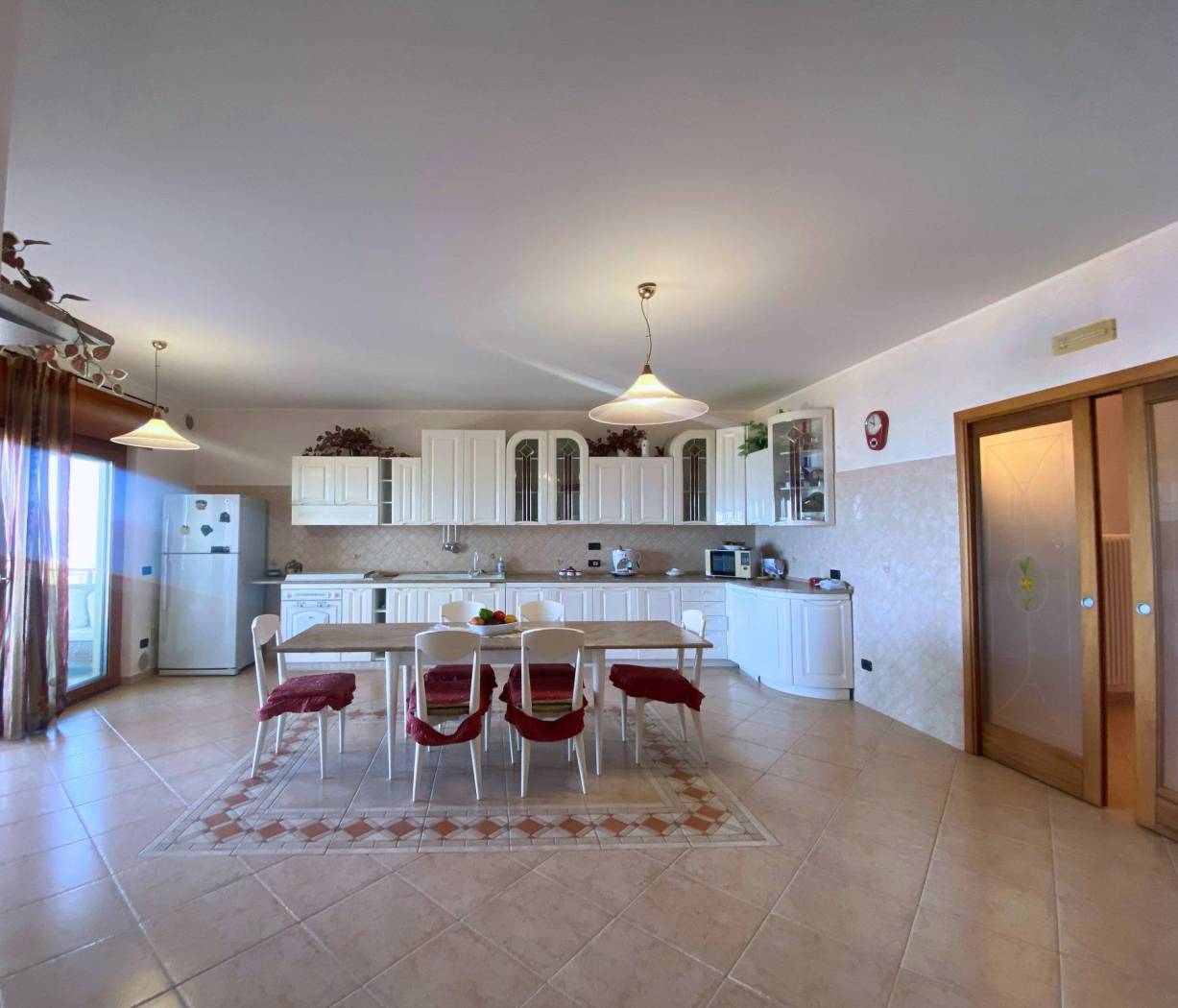 A Vibo Marina, in Via Longobardi 2ª Traversa, l'Agenzia Immobiliare ViboCASA propone in vendita prestigioso appartamento di Mq.160,00 ca., posto al 2° piano all'interno di un complesso residenziale moderno e signorile. La proprietà comprende anche due posti auto chiusi, comodi e sicuri. L'ingresso/disimpegno conduce alla luminosa zona living con cucina a vista, separata da porta a scomparsa con vetri opachi e raffinati decori colorati. La zona giorno è caratterizzata da un'ampia vetrata con affaccio diretto sul porto di Vibo Marina, dalla quale si accede a un terrazzo con parapetto in vetro, che consente di godere di una vista panoramica che spazia da Briatico fino ad Amantea. Il terrazzo prosegue in un balcone con lavatoio, pratico e funzionale. La zona notte comprende 3 camere da letto, studio, doppi servizi, (entrambi dotati di box doccia), e comodo ripostiglio. L'appartamento si presenta in condizioni impeccabili, rifinito con materiali di pregio e dotato di: